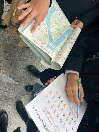 『えっー!』というリアクションや話を聞いている表情からも、現地でしか感じられないものに触れている様子でした。」「スタンプラリーのクイズをすることで、学びが定着していると感じました。
