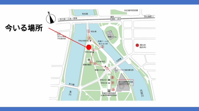 その後、西村さんによる案内のもと、平和記念公園内にある10のピーススポットを巡りました。